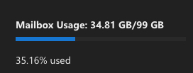 In the GUI, we can see that the mailbox size in our example is only showing 34gb: