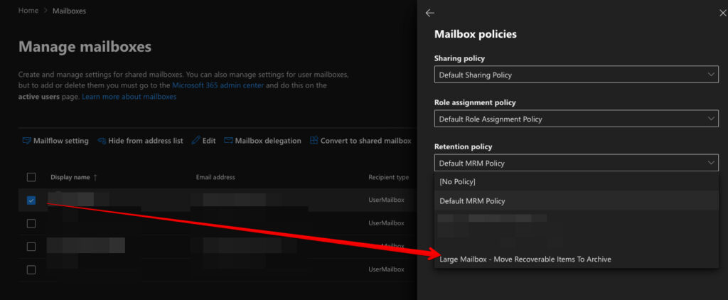 5. Apply the retention policy to the mailbox: